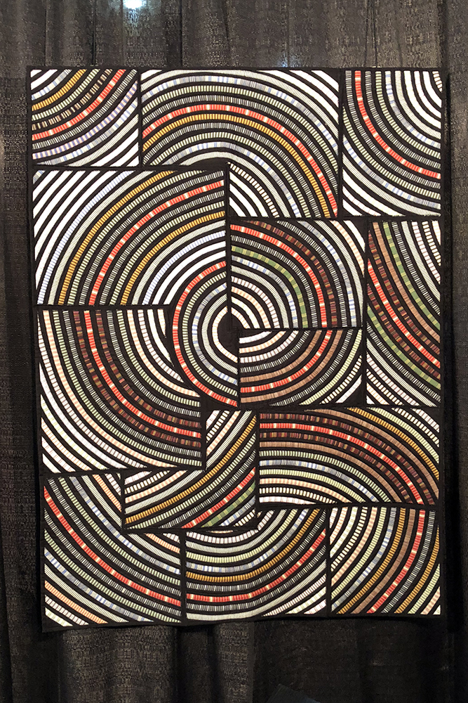 As usual, the Modern Quilt Guild had a showcase area and several of the quilts there were very familiar to me after seeing them online. But I was happily surprised to see a few new-to-me pieces. This one was inspired by circular farm fields as seen from a plane. (I’ve been wanting to make a “seen from the air” quilt for years! Need to get on that.)