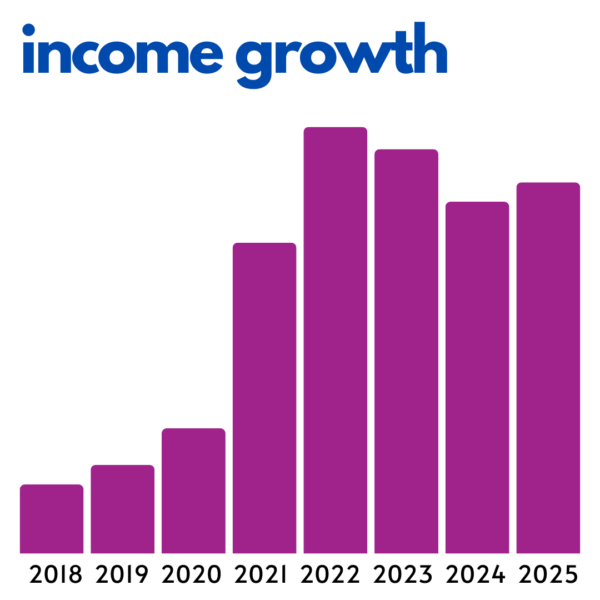 In 2020, my total quilting income increased by 38%. (This is the exact same amount that it increased from 2018 to 2019 which is weird!)