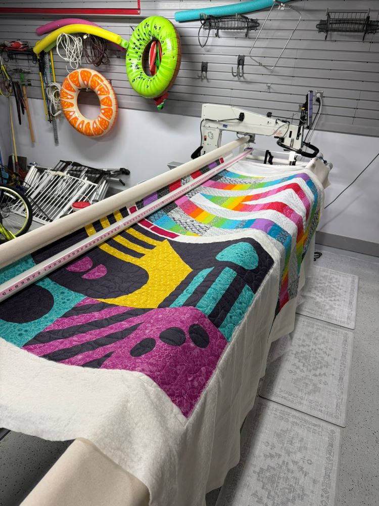 - Quilting on my APQS Millie with Aurifil monofilament thread on top and Glide in the bobbin.