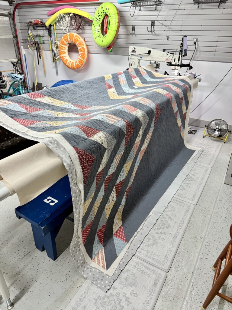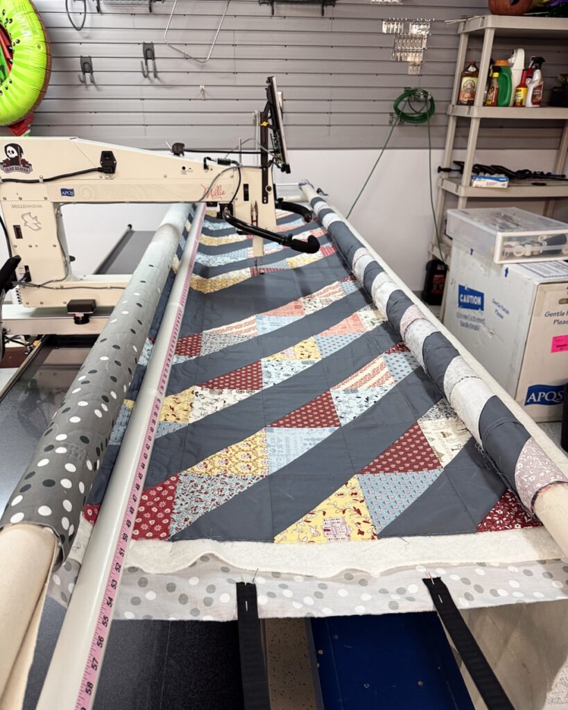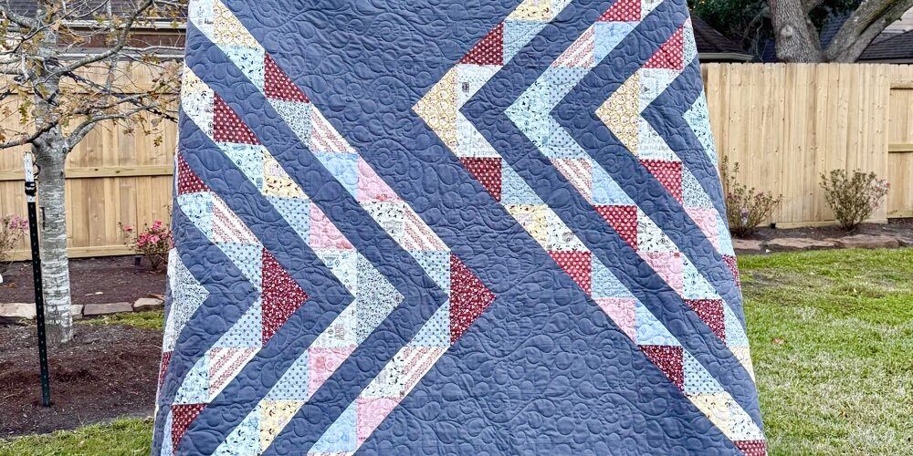 Late last year, I tackled my biggest longarming project to date — a queen/king-sized quilt! I’ve never made anything larger than a twin, but when my friend Carter asked if I would longarm this quilt top for him (so that he could gift it to his sister for Christmas) I quickly agreed.