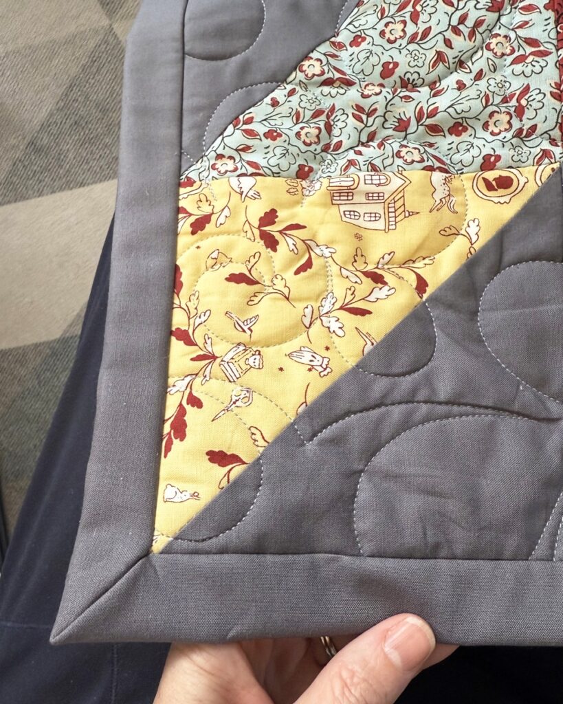 Since we knew there wouldn’t be enough time for me to ship the quilt back to Carter in Europe for him to bind it and then ship back to the US to his sister, I agreed to attach the binding as well. He wanted a thicker binding, which is another technique I had never tried! But this chunky binding tutorial from Latifah Saafir proved to be quite helpful. The most difficult part was wrangling the bulk of this large quilt to the side of my machine while I sewed!