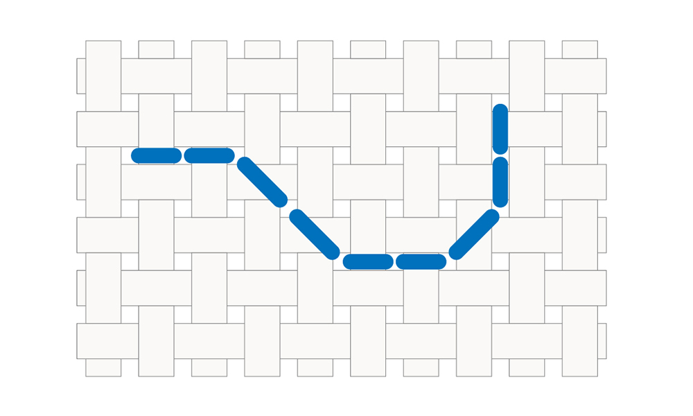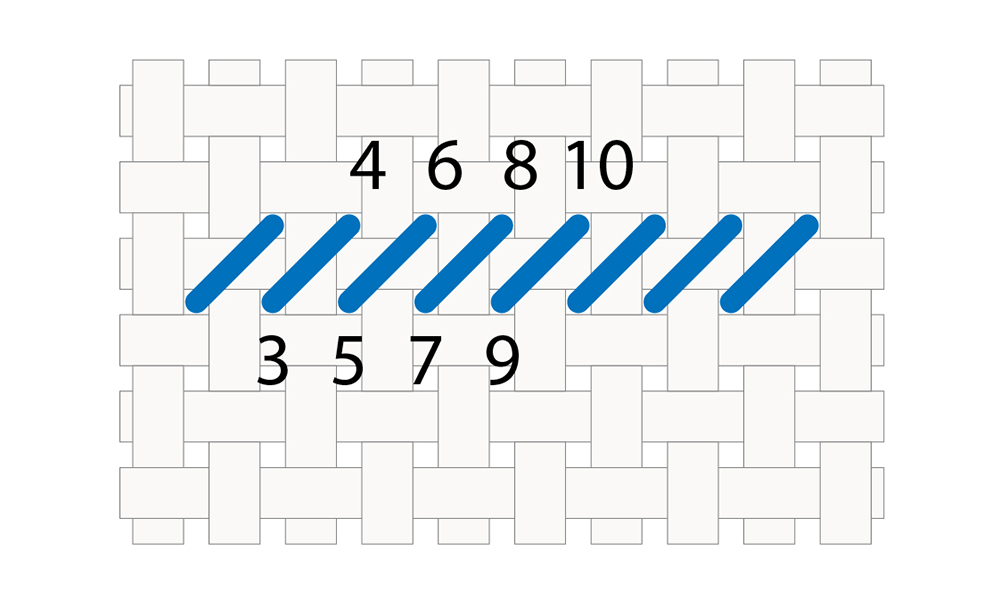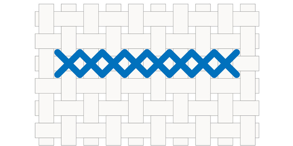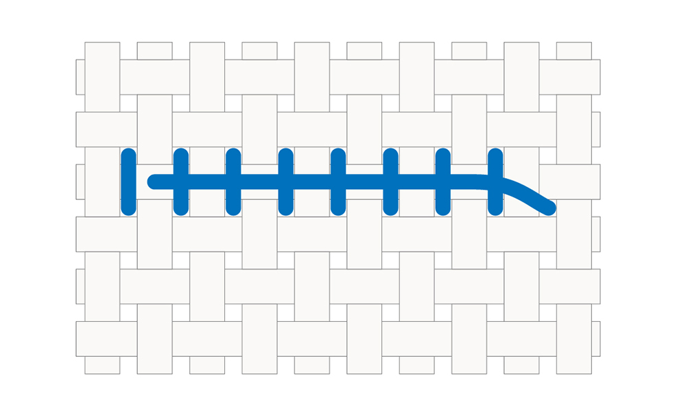 - Don’t pull the thread too tight or leave it too loose — you want the stitches to lie flat without pulling or warping the fabric, and without looking loopy or messy.