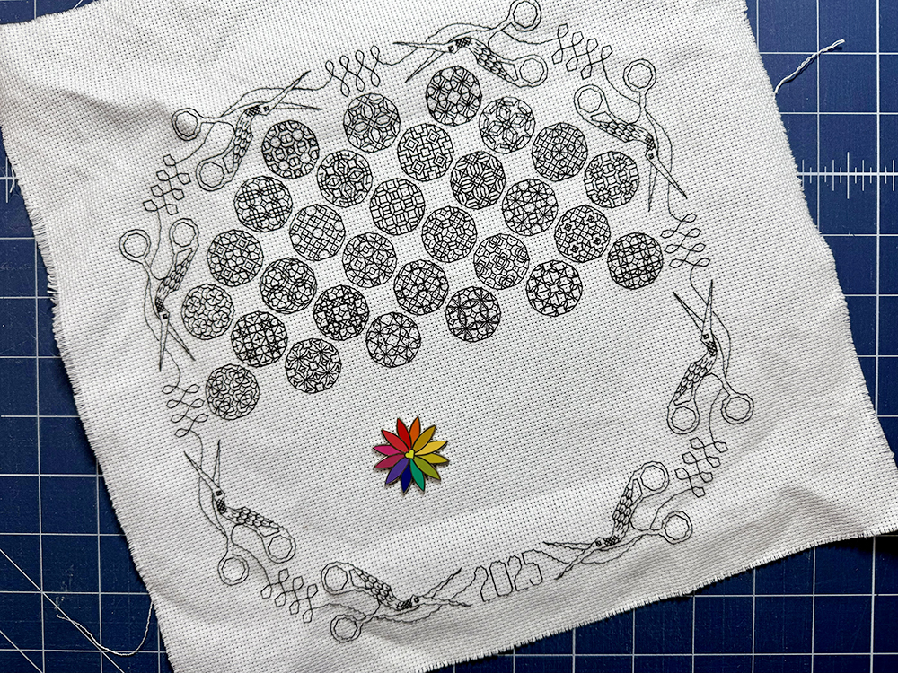 I’m all caught up on the blackwork embroidery stitch along (pattern from The Steady Thread). 29 weeks down and 23 to go!