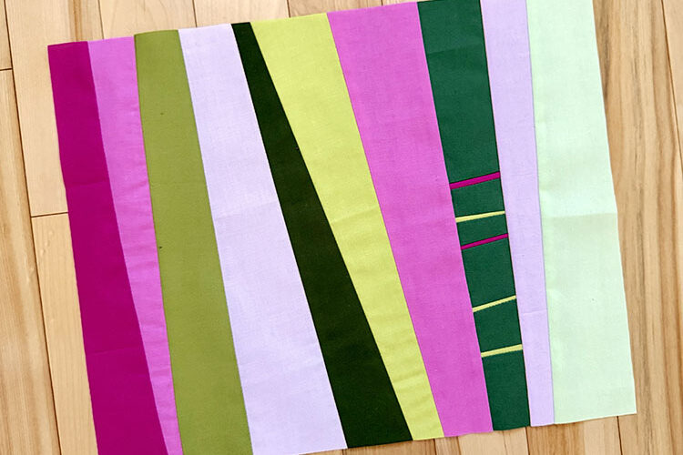 We are primarily an improv-focused bee (hence the “unscripted” in our name), and use mainly solid fabrics. Each month, one person chooses a theme or prompt, and provides guidance for the color palette and size/shape of blocks if they have a specific requirement.