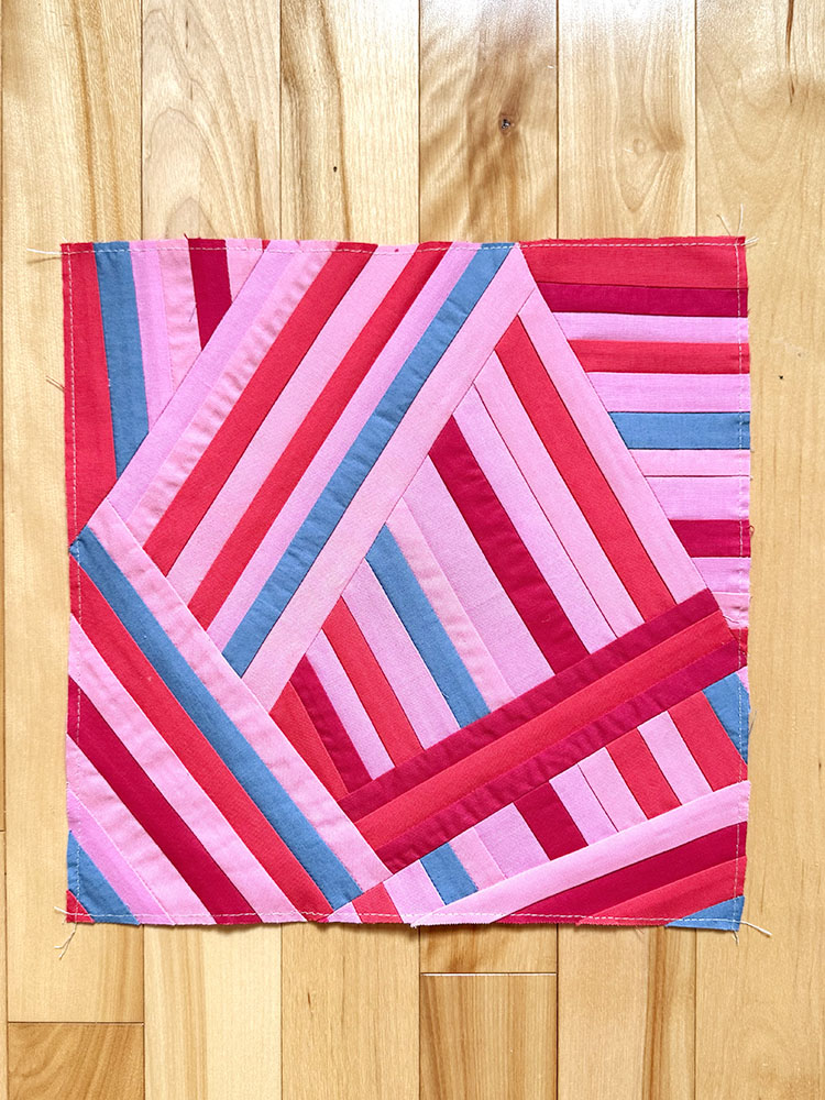 In January, Emily asked us to make stripes blocks in either pink with a bit of blue or blue with a bit of pink. I chose the pink option and enjoyed making this block!