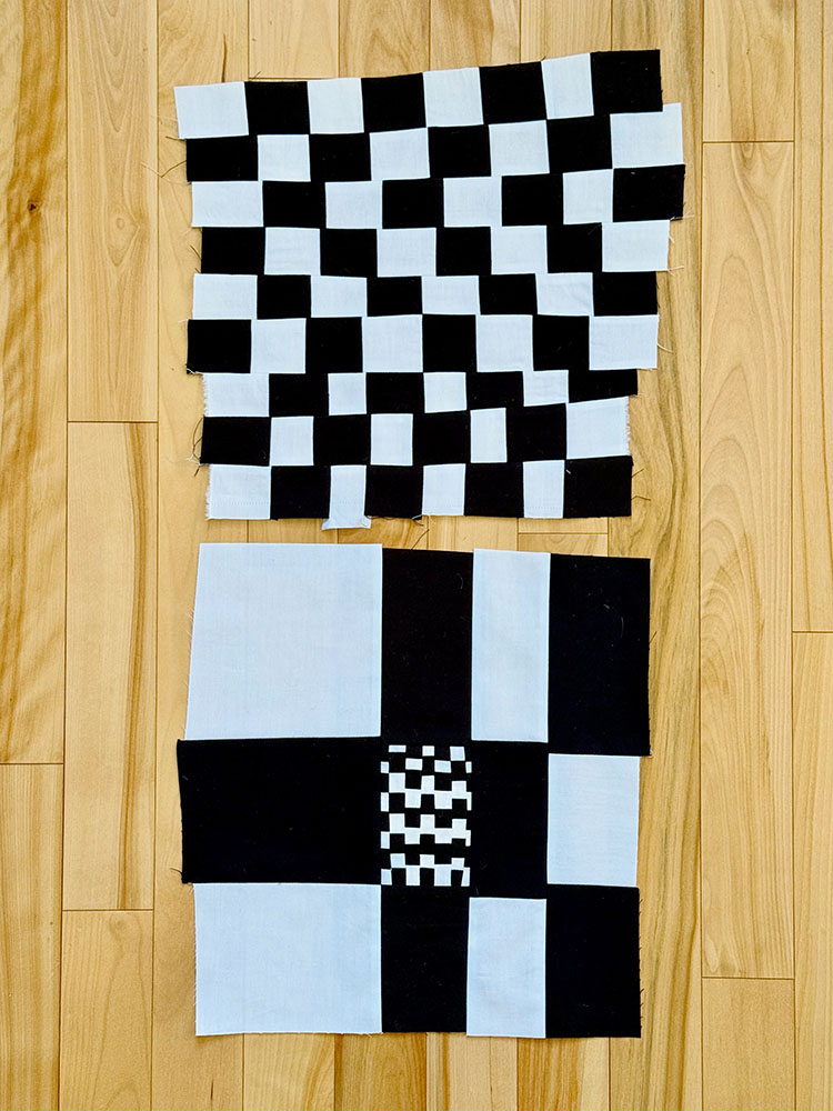 For July, Jenn asked for improv black-and-white checkerboard blocks. This was a prompt that was very simple yet effective, and I’m really curious to see how the finished quilt turns out. (Kinda wish I’d thought of this one myself!)