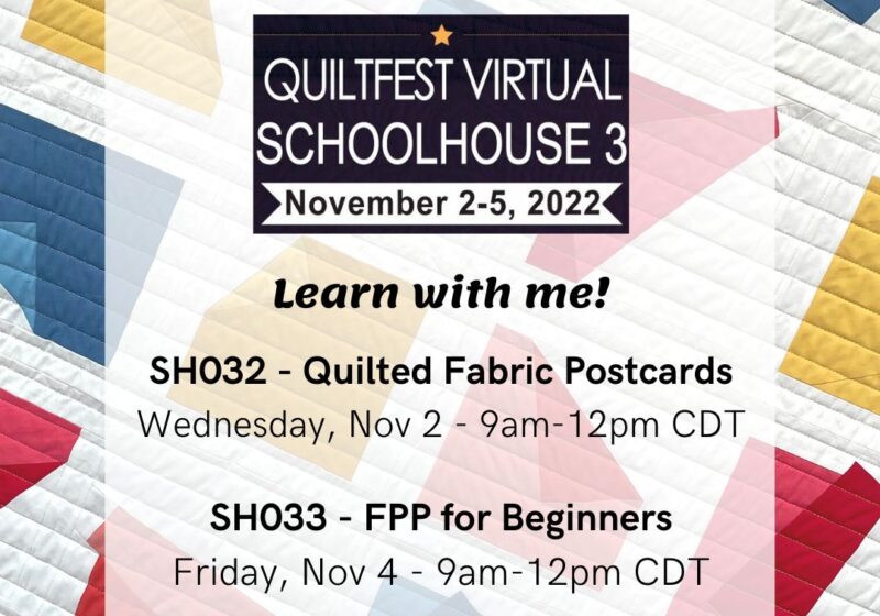 Registration is open for the QuiltFest Virtual Schoolhouse #3, and I’m excited to be participating in this event in November!…